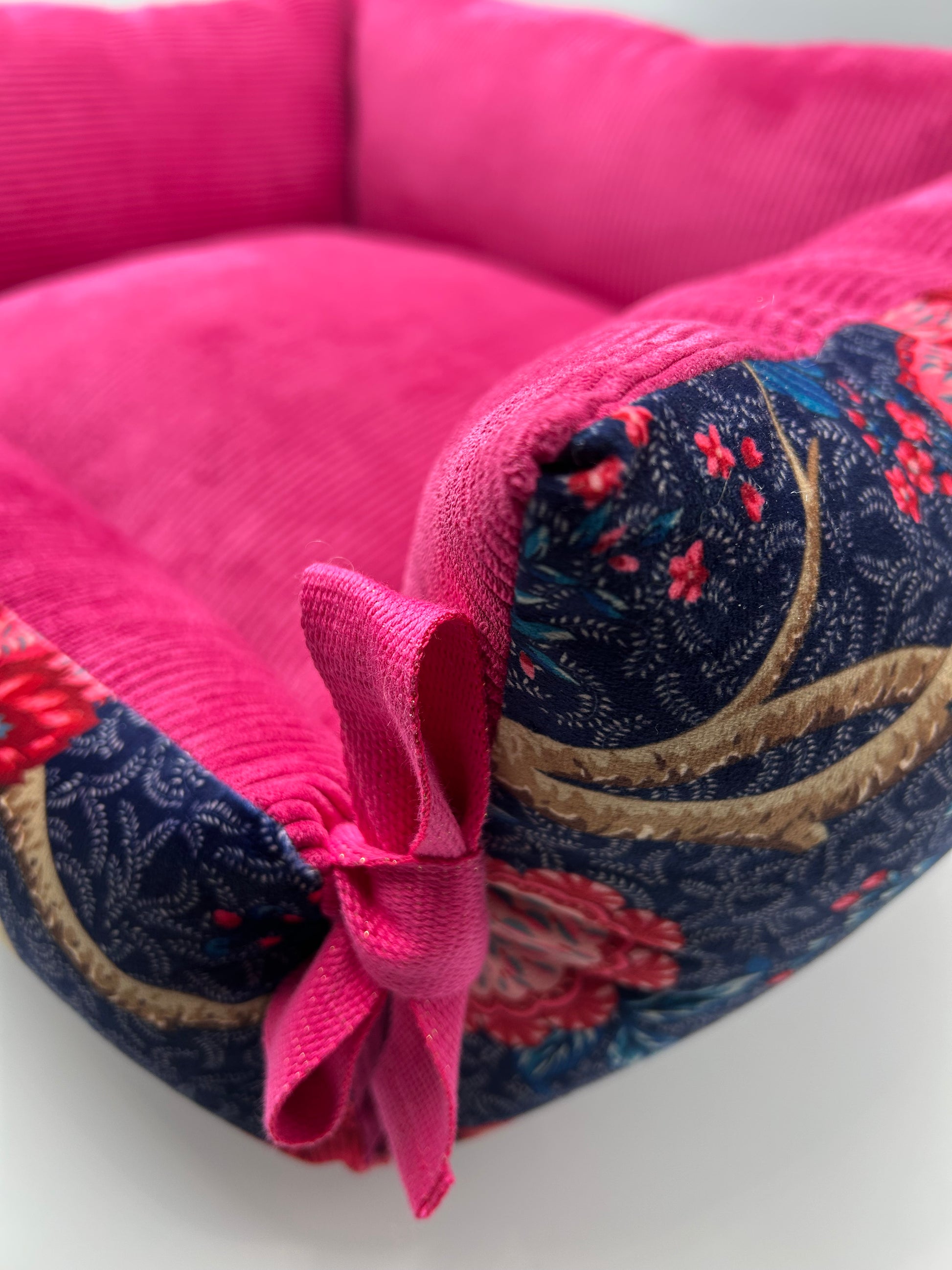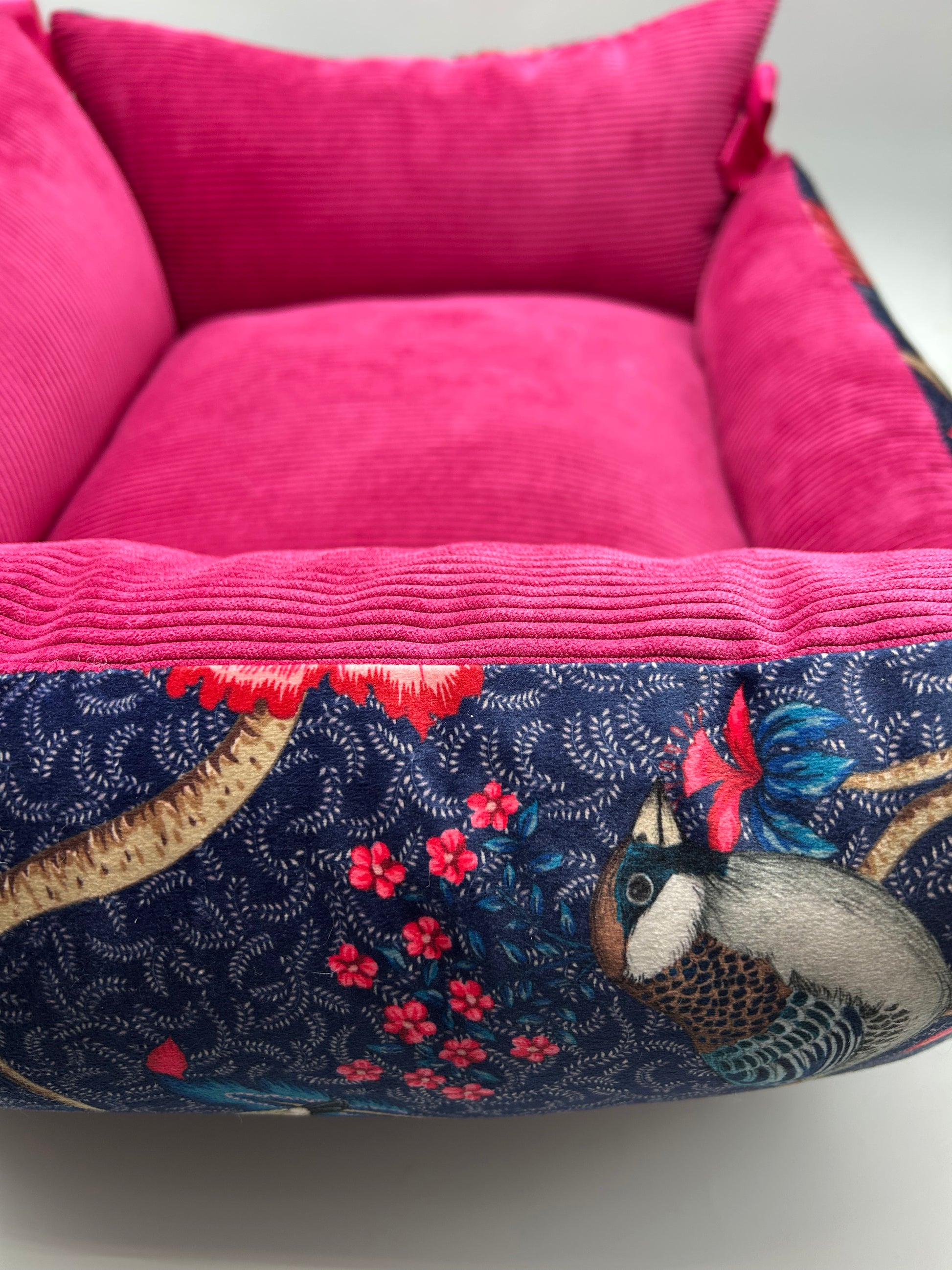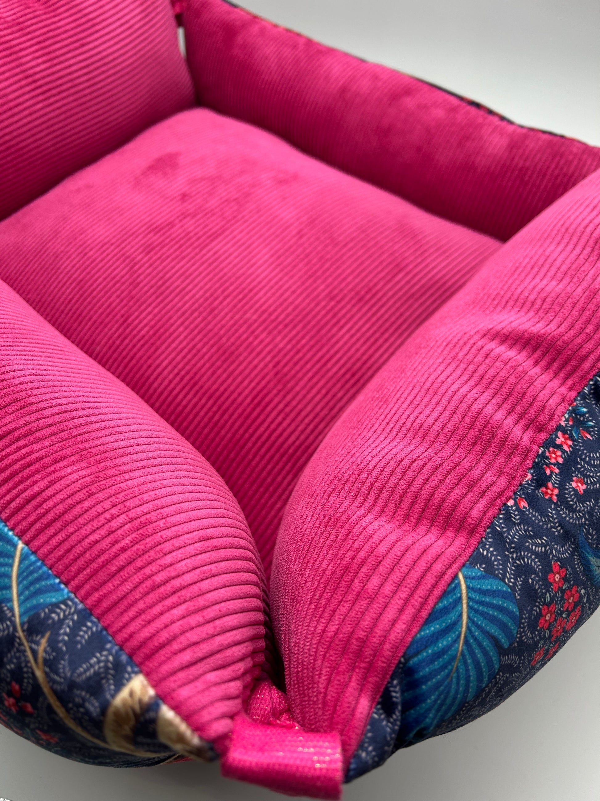 ⭐️ Dodo canapé modèle Bastet, 65x55. Magnifique velours Maison Thévenon assorti à un velours côtelé couleur rose fuchsia.