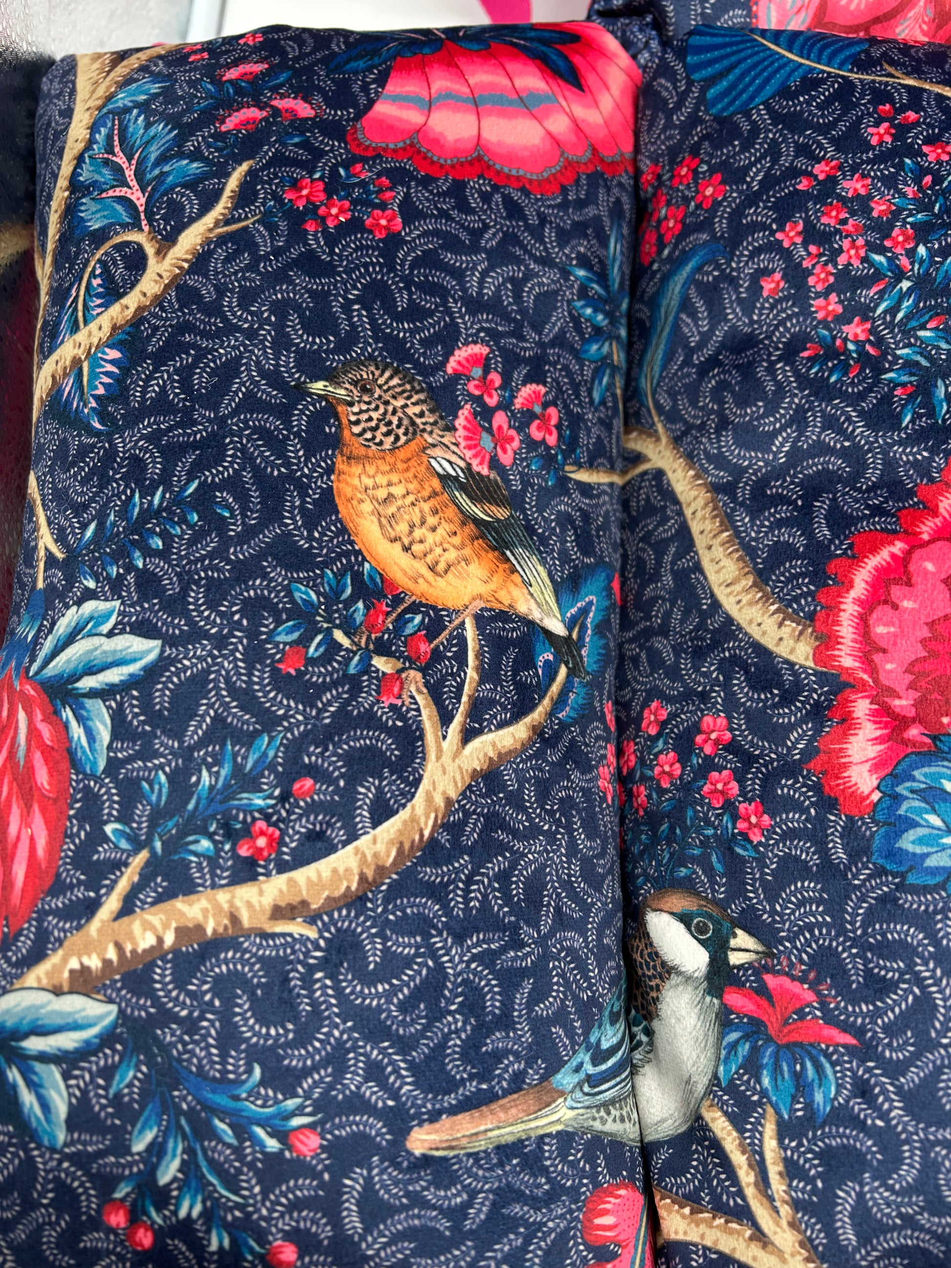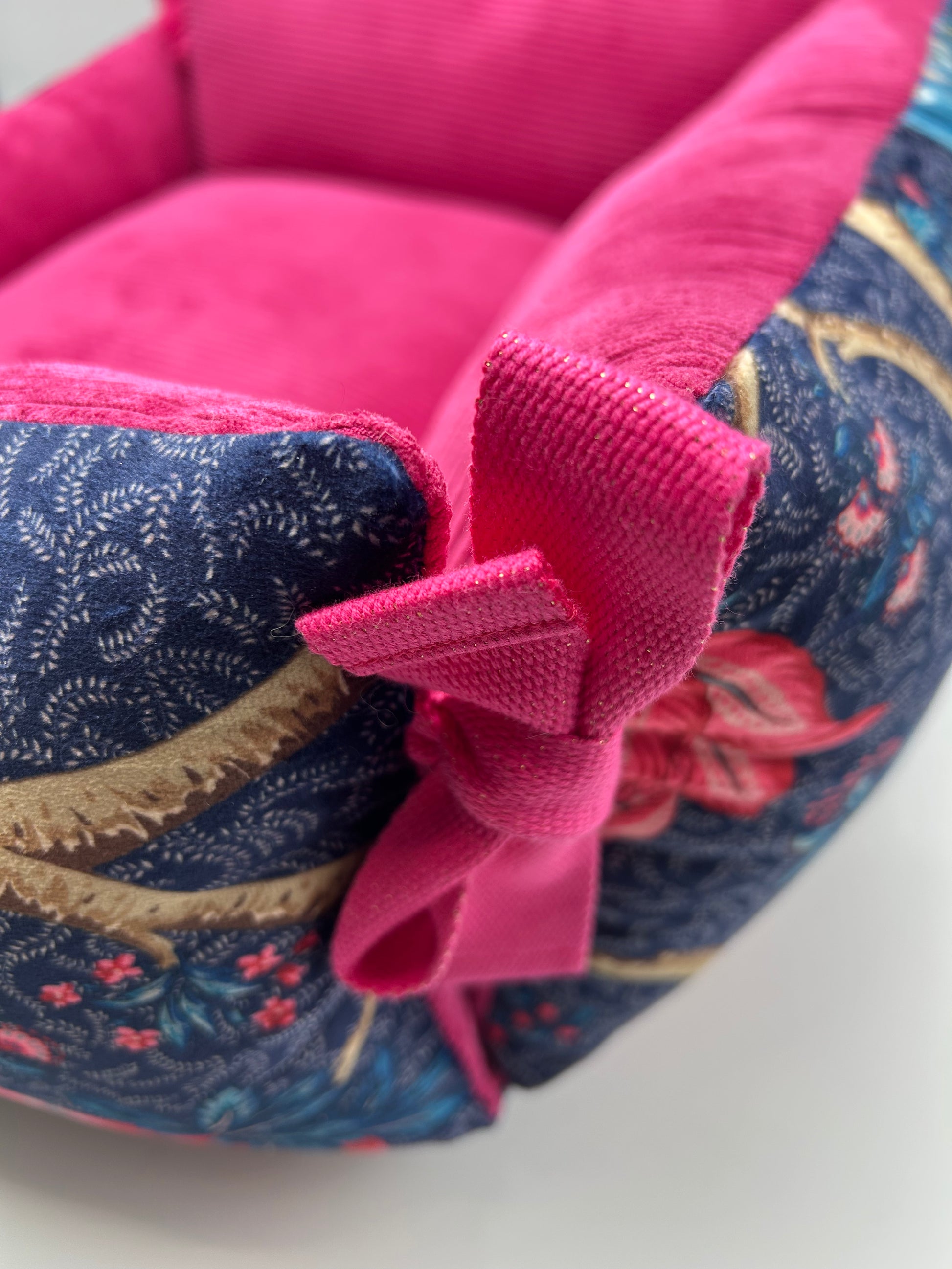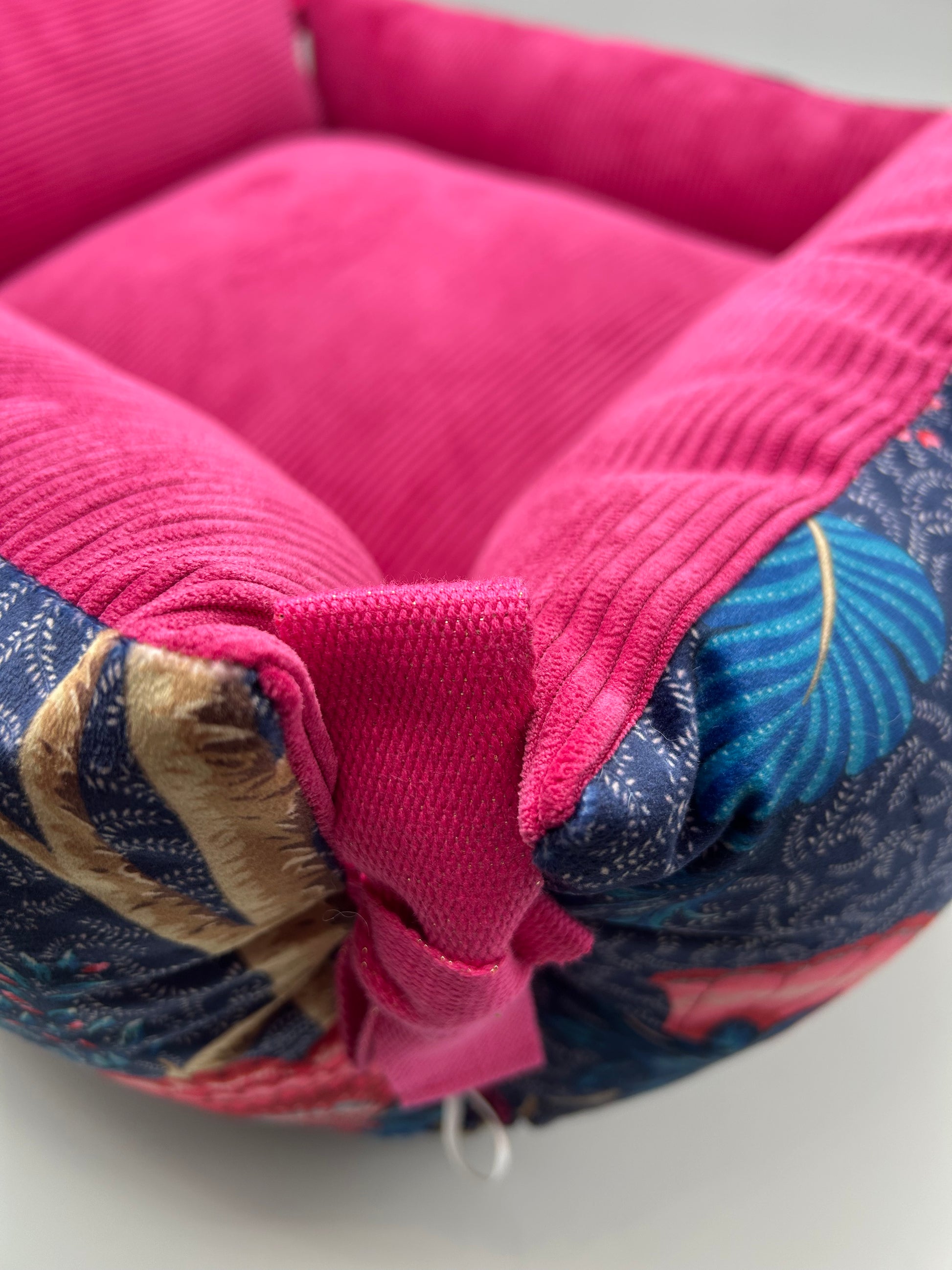 ⭐️ Dodo canapé modèle Bastet, 65x55. Magnifique velours Maison Thévenon assorti à un velours côtelé couleur rose fuchsia.