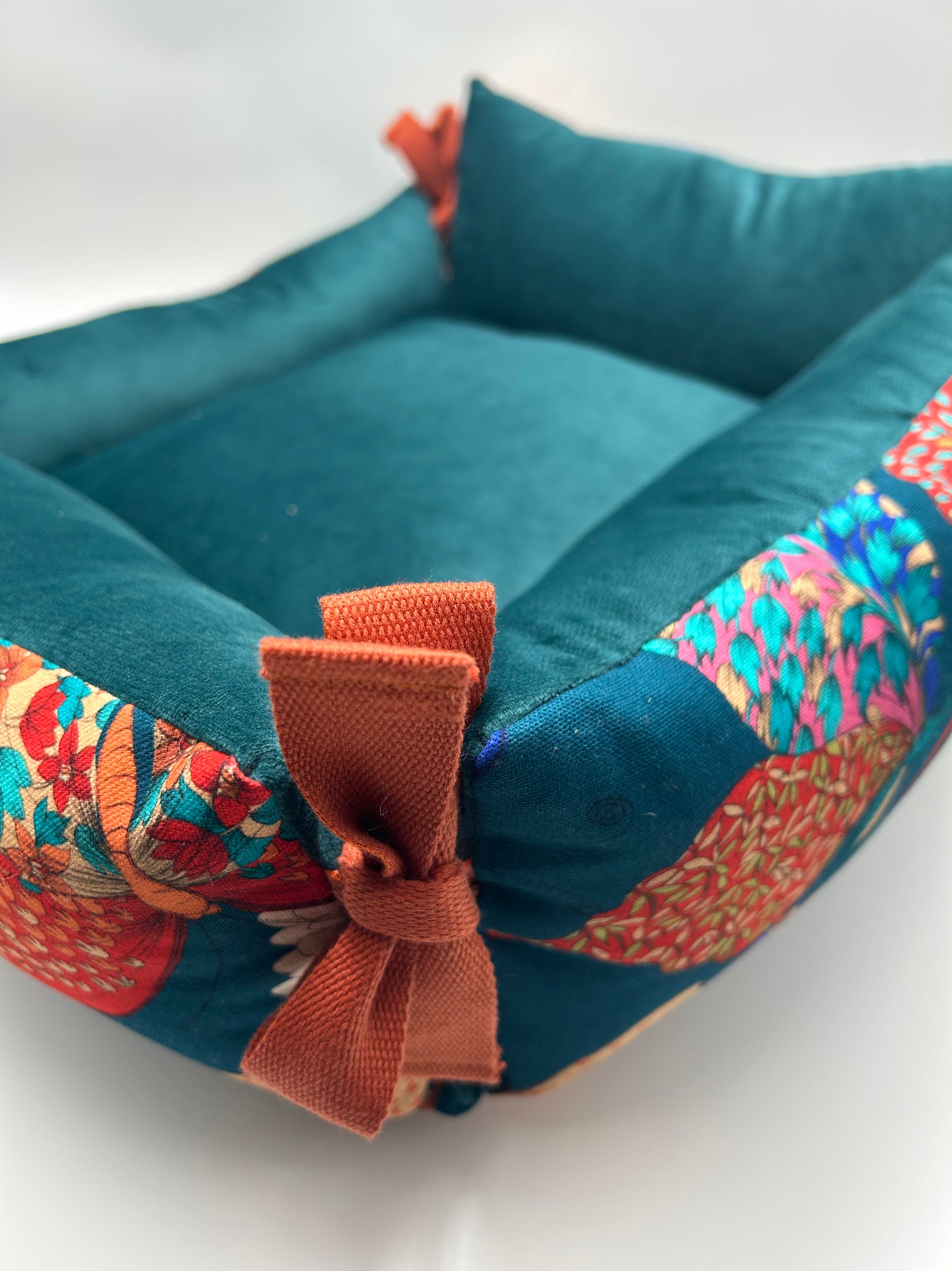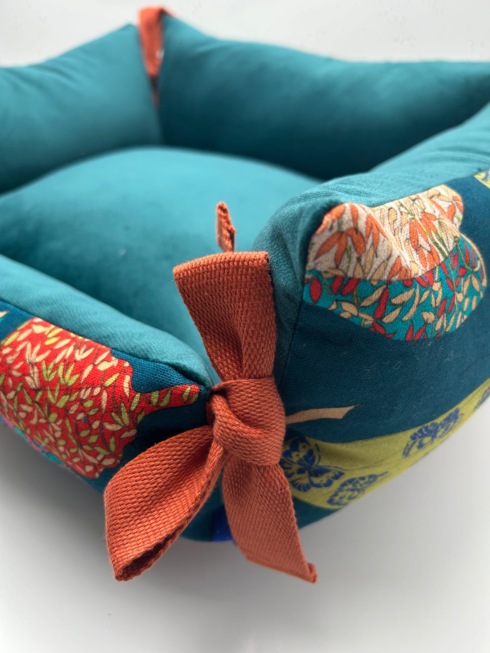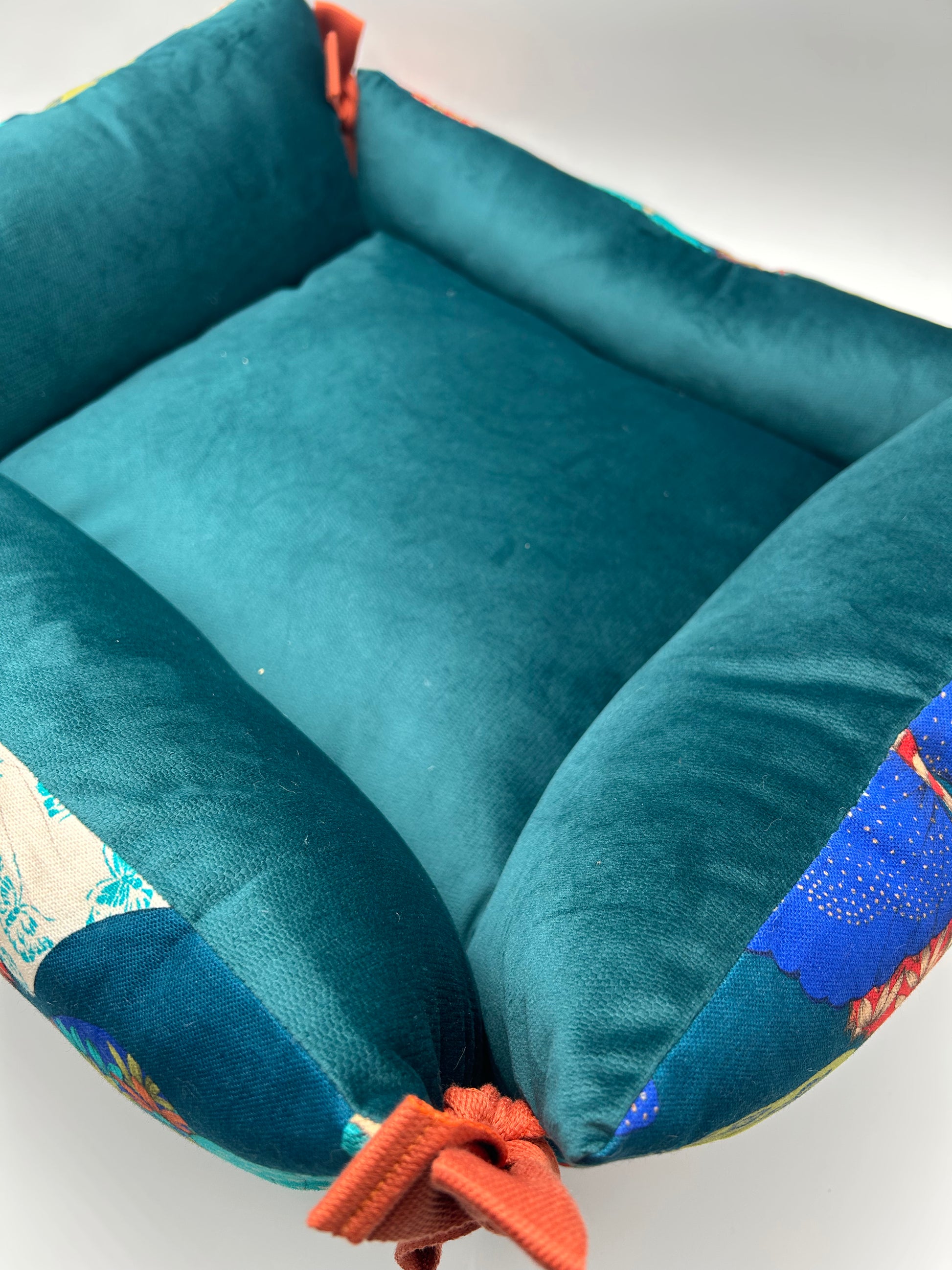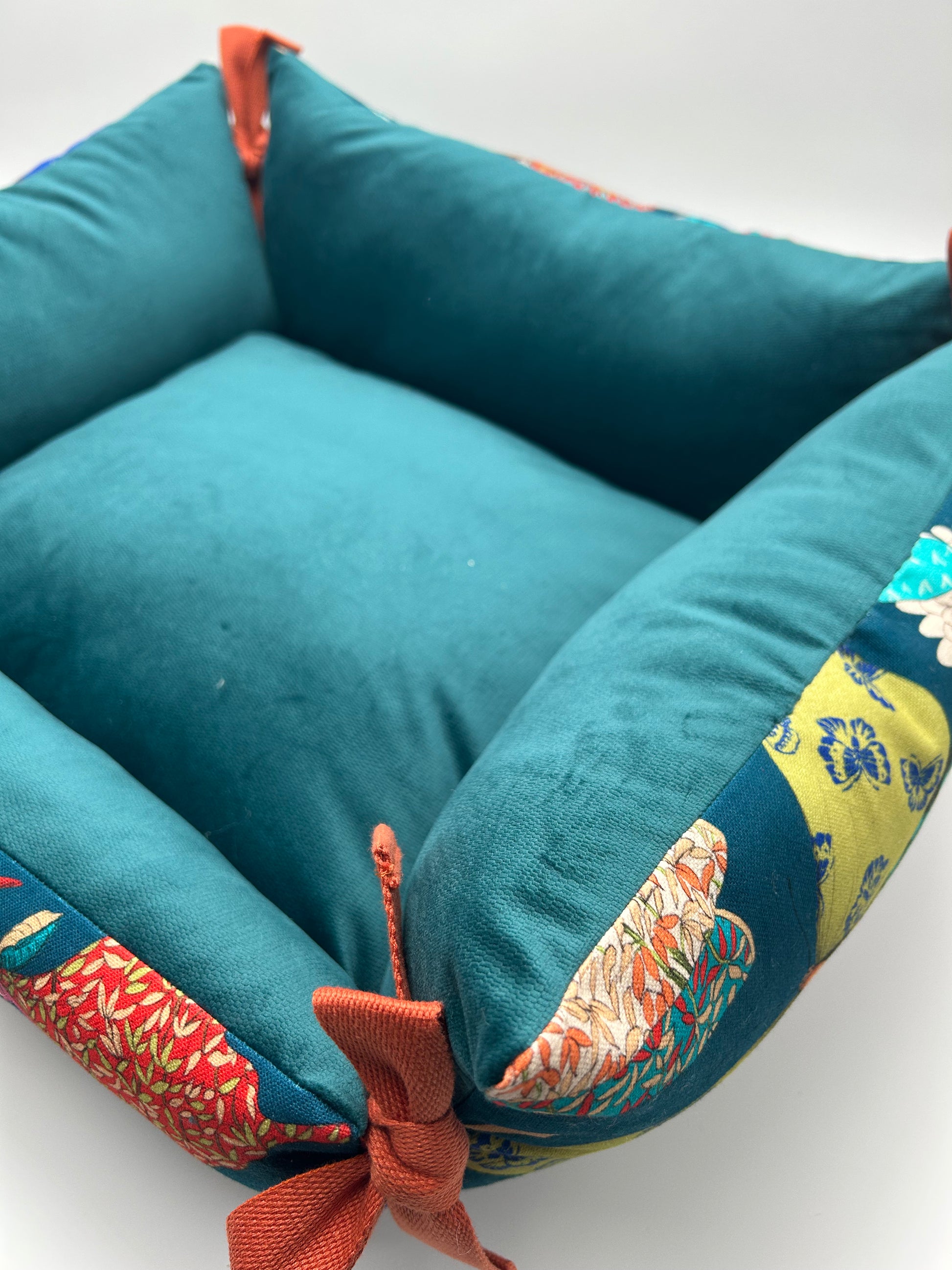 ⭐️ Dodo canapé modèle Prima Donna, 55x45. Magnifique tissu bachette Thévenon motif papillons assortie à un velours bleu canard, tout doux.