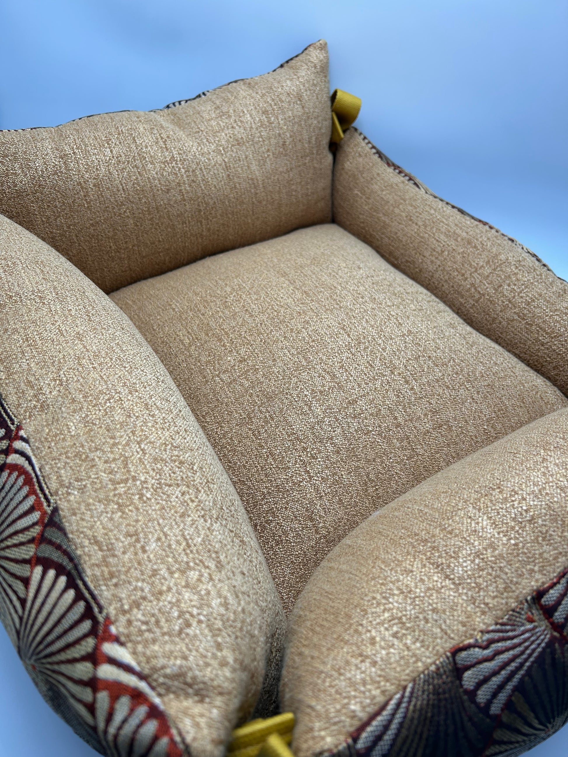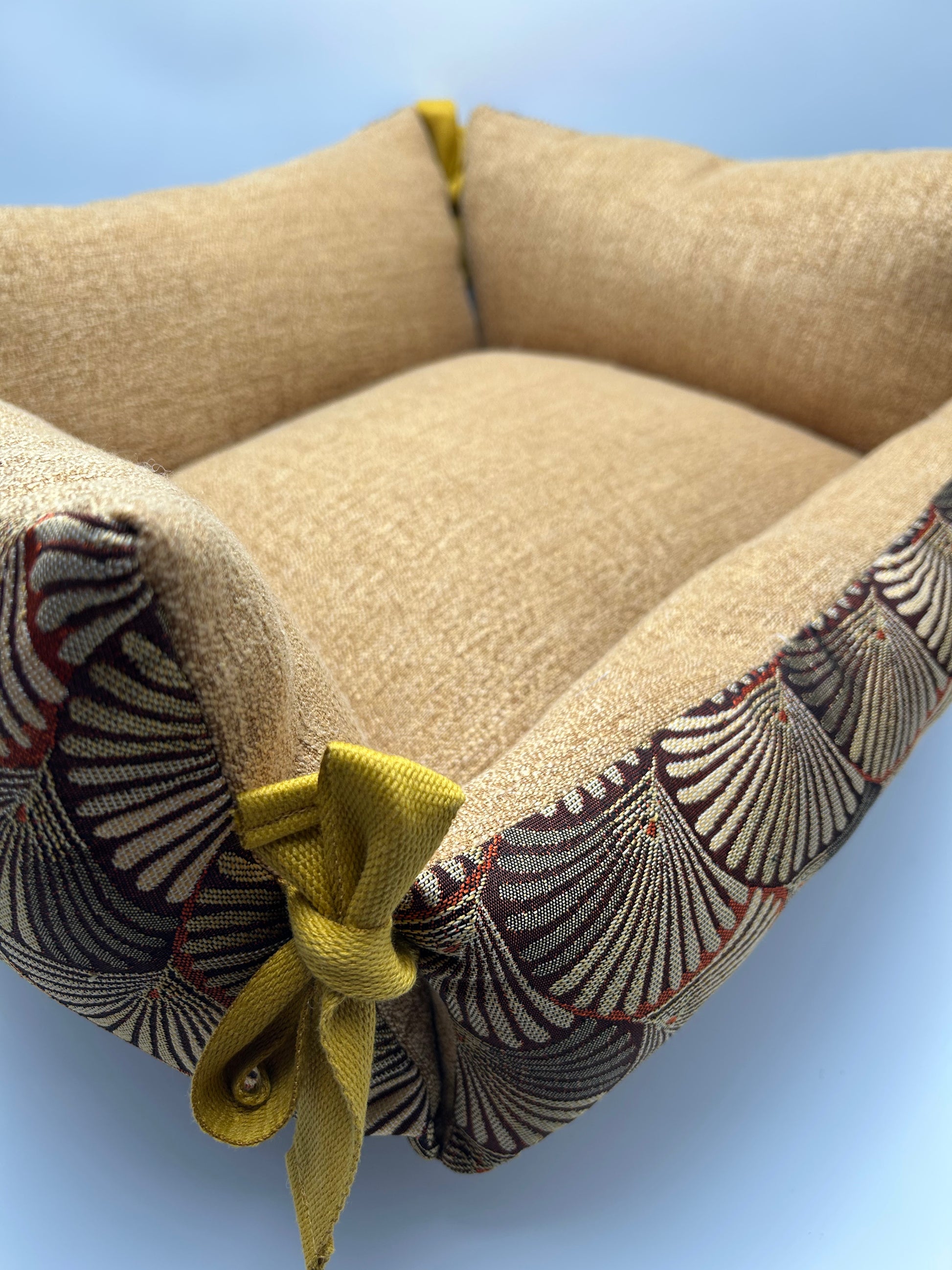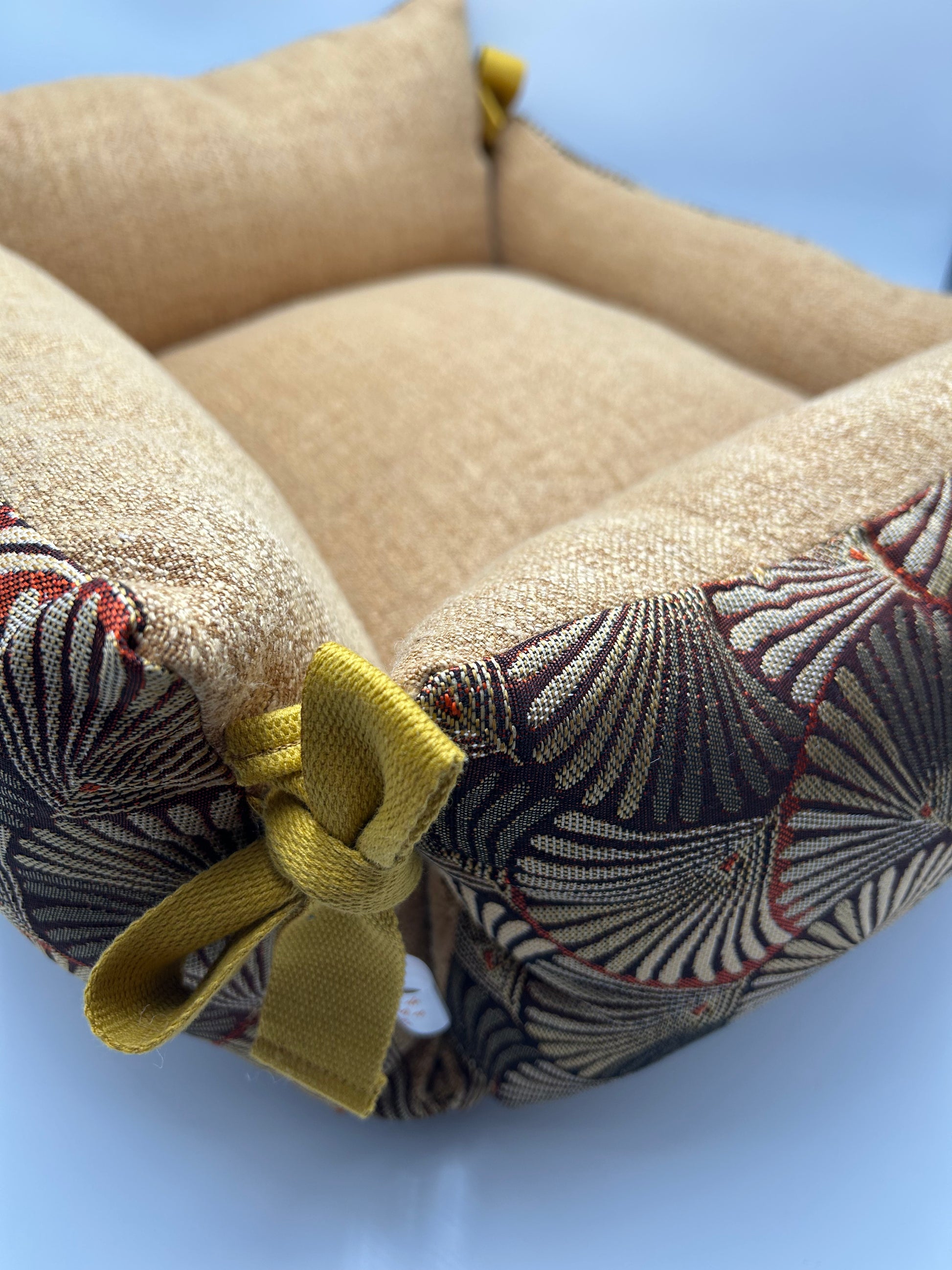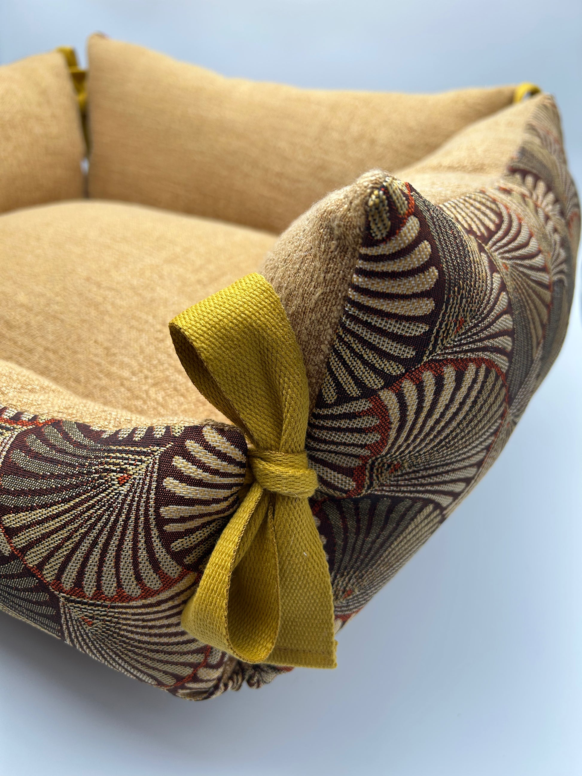 ⭐️ Dodo canapé modèle Sakura, 65x55. Magnifique jacquard fabriqué en France assorti à un épais velours couleur or.